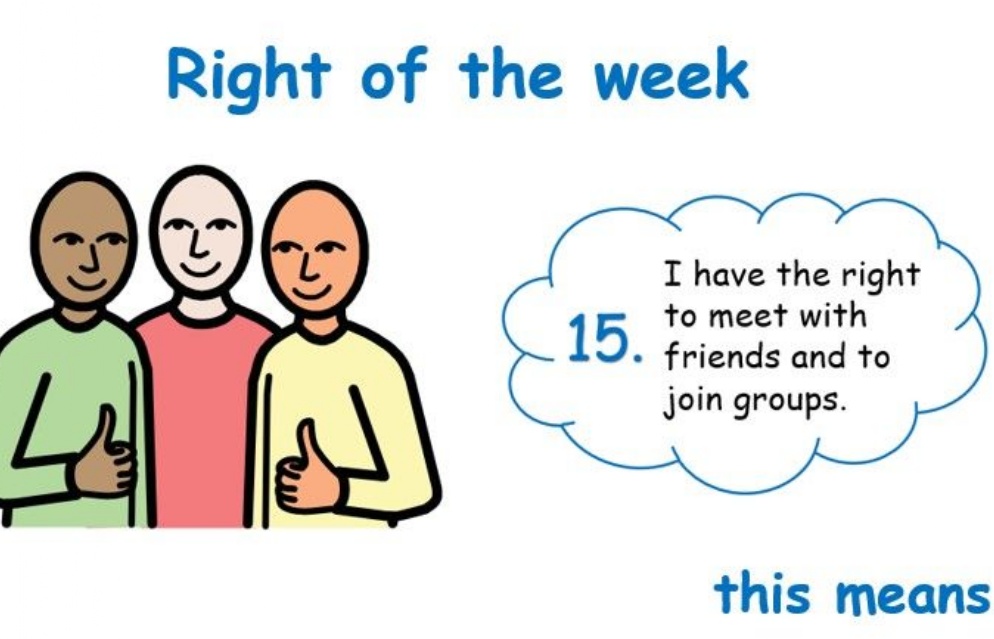 This week we are looking at Article 15 - I have the right to meet with friends and to join groups.